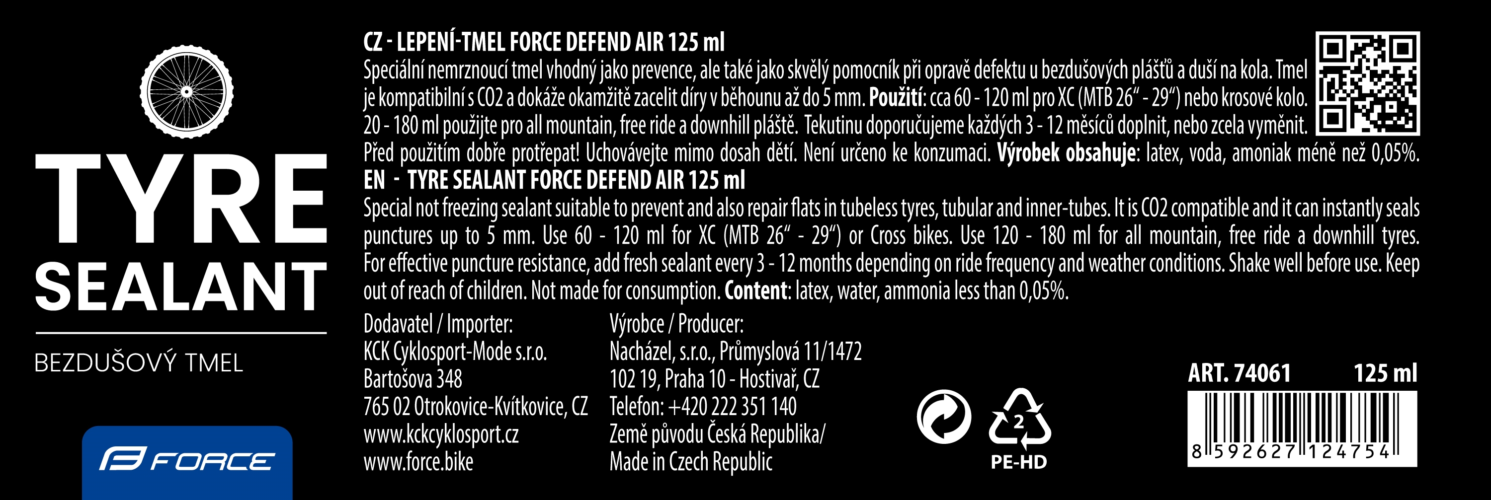 tmel FORCE pro bezdušové systémy, kapátko 125 ml