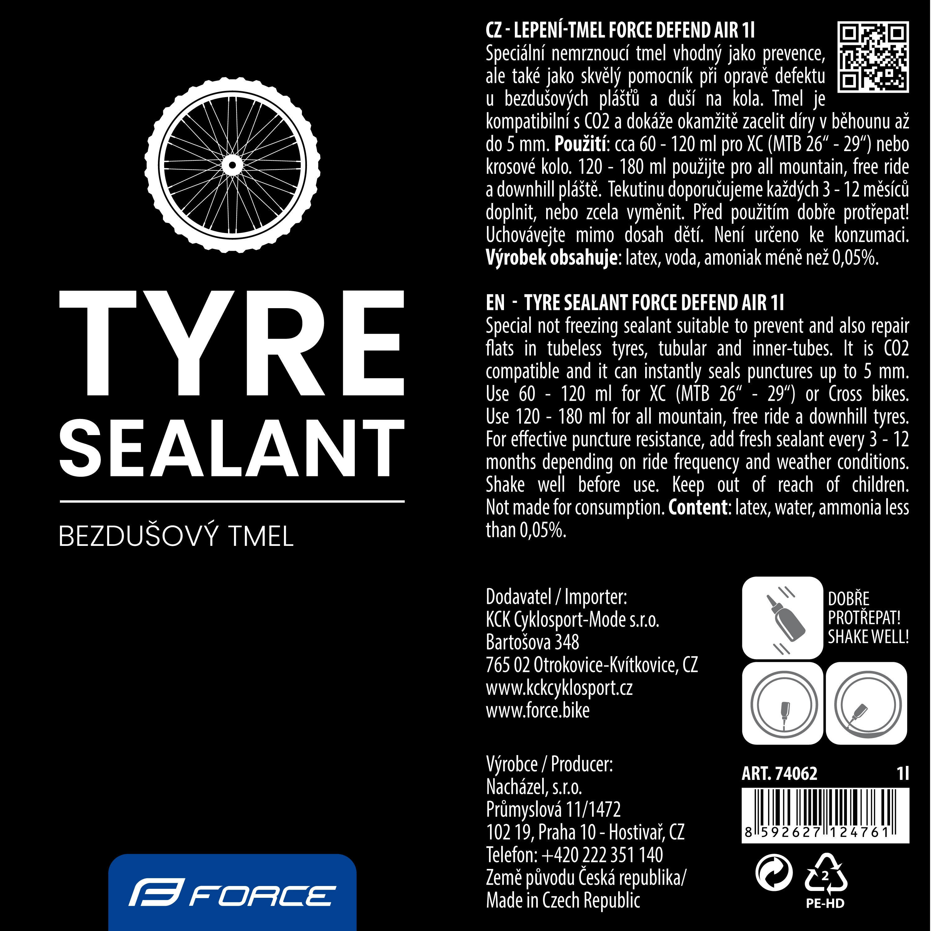 těsnící tmel speciálně vyvinutý pro prevenci defektuvhodné pro všechny typy bezdušových (tubeless) plášťů, galusek i dušídokáže zacelit otvory až do průměru 5 mmtmel je kompatibilní i s CO2nemrznoucí